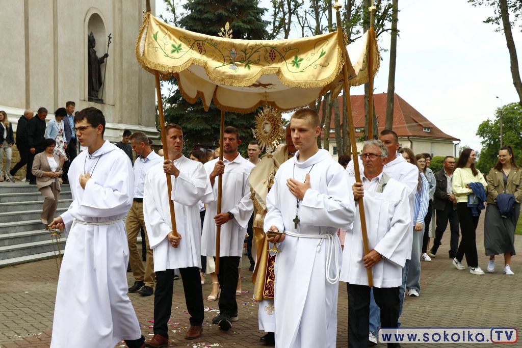 19.06. o godzinie 10.00 odbyła się procesja Bożego Ciała ,poprzedzona Mszą świetą, z licznym udziałem wiernych. Mszę świętą koncelebrowali: ks. Andrzej Makarewicz, ks. Daniel Kwietniewski i ks. Piotr Przesmycki, który wygłosił kazanie. Procesja wokół placu kościelnego zatrzymywała się przy czterech ołtarzach - stacjach (bardzo starannie przygotowanych) przez naszych parafian. Przygotowanie ich wymagało dużego wkładu pracy. Na uwagę zasługiwał szczególnie IV, najwiekszy ołtarz, przygotowany przez mieszkańców Harasimowicz. Przy Chrystusie, nauczającym z łodzi, umieścili oni ciągle aktualane pytanie: "Gdzie jest wasza wiara ?". Różanostockie uroczystosci trwały dwie godziny. Zakończyły się błogosławieństwem Najświetszym Sakramentem - "na cztery strony świata" i odśpiewaniem hymnu "Te Deum" (Zdjęcia TV Sokółka).