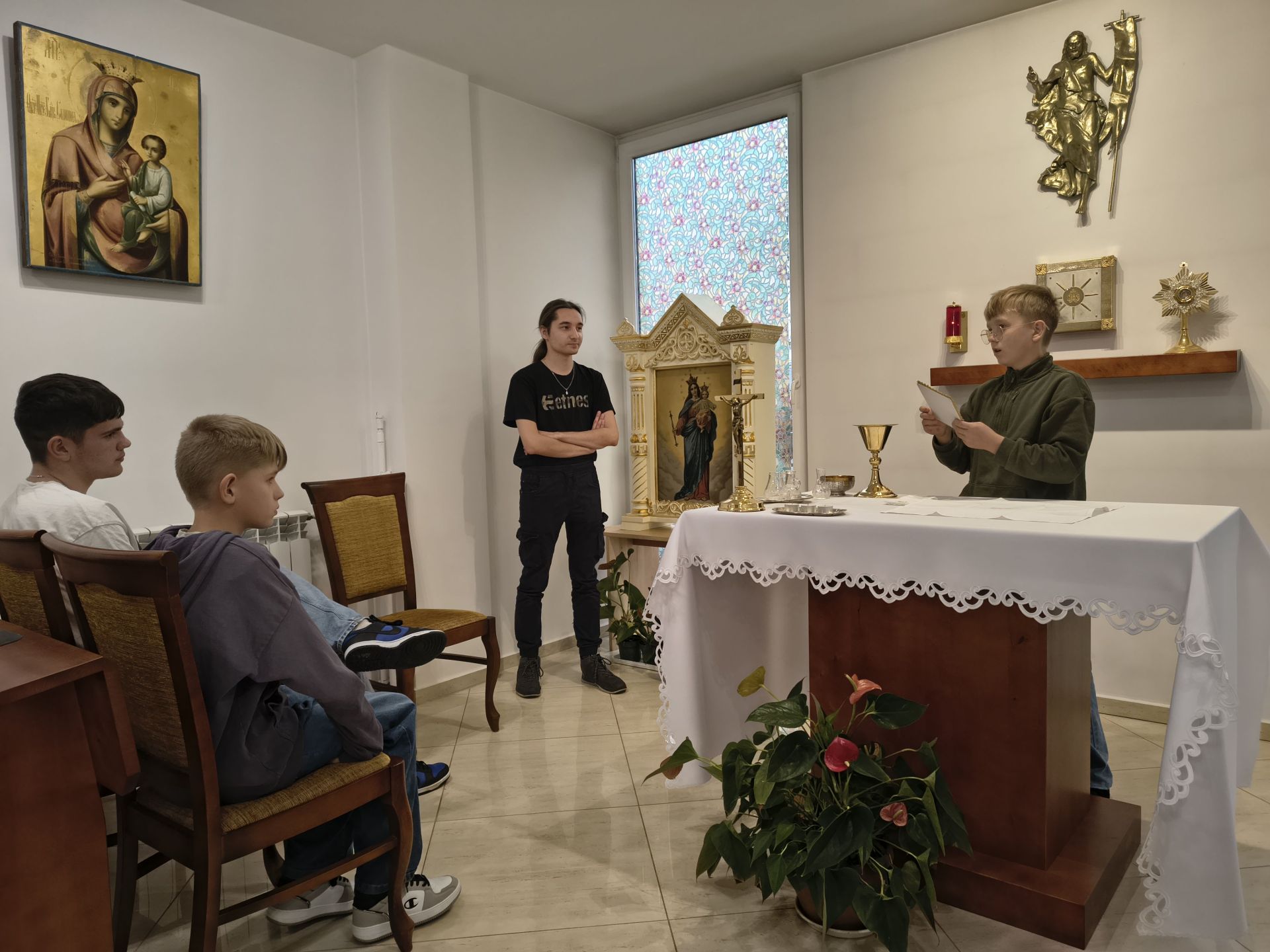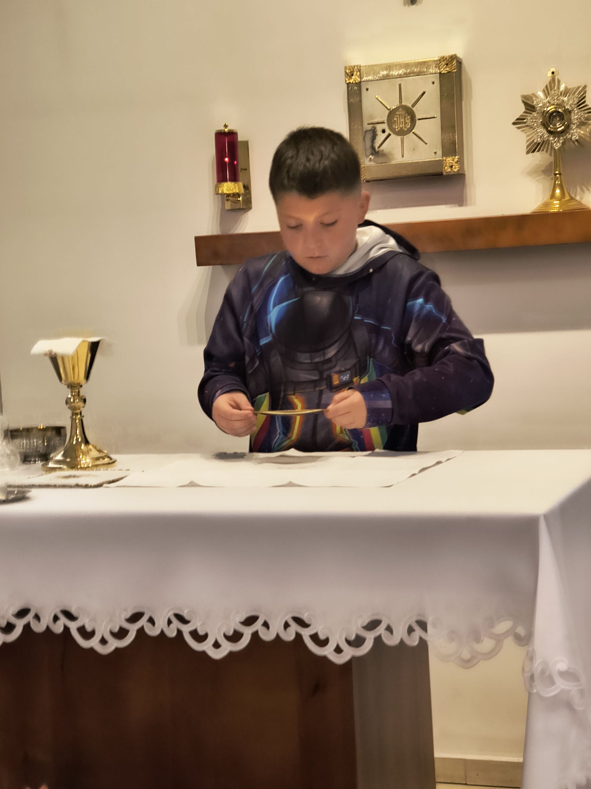 Podczas dzisiejszej zbiórki ministrantów (18.10) ze szkół podstawowych omówiliśmy m.inn. sprawy bieżące oraz zagadnienia związane z rokiem liturgicznym. Ćwiczeniom z liturgii, przewodniczył Szczepan Walenciej. Następna zbiórka (dla wszystkich ministrantów) w sobotę 22 listopada o godz. 10.30 w tym samym miejscu. Ks Piotr Przesmycki